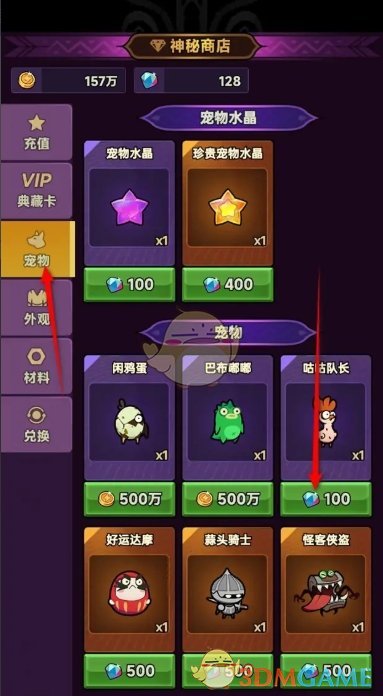 3、接着在商店页面,找到宠物,选择咕咕队长进行购买;