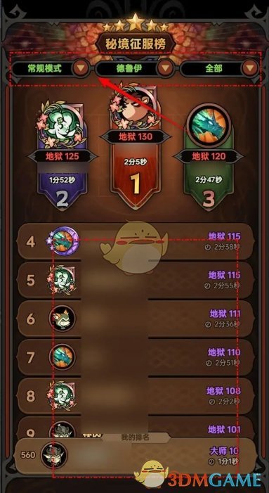 3、进入到秘境征服榜后,就能查看到秘境排行榜的详细排名;