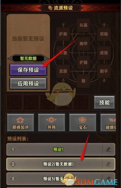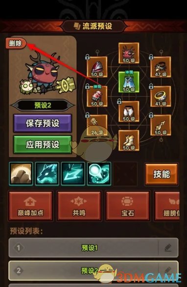 迷雾大陆预设流派怎么保存与删除?