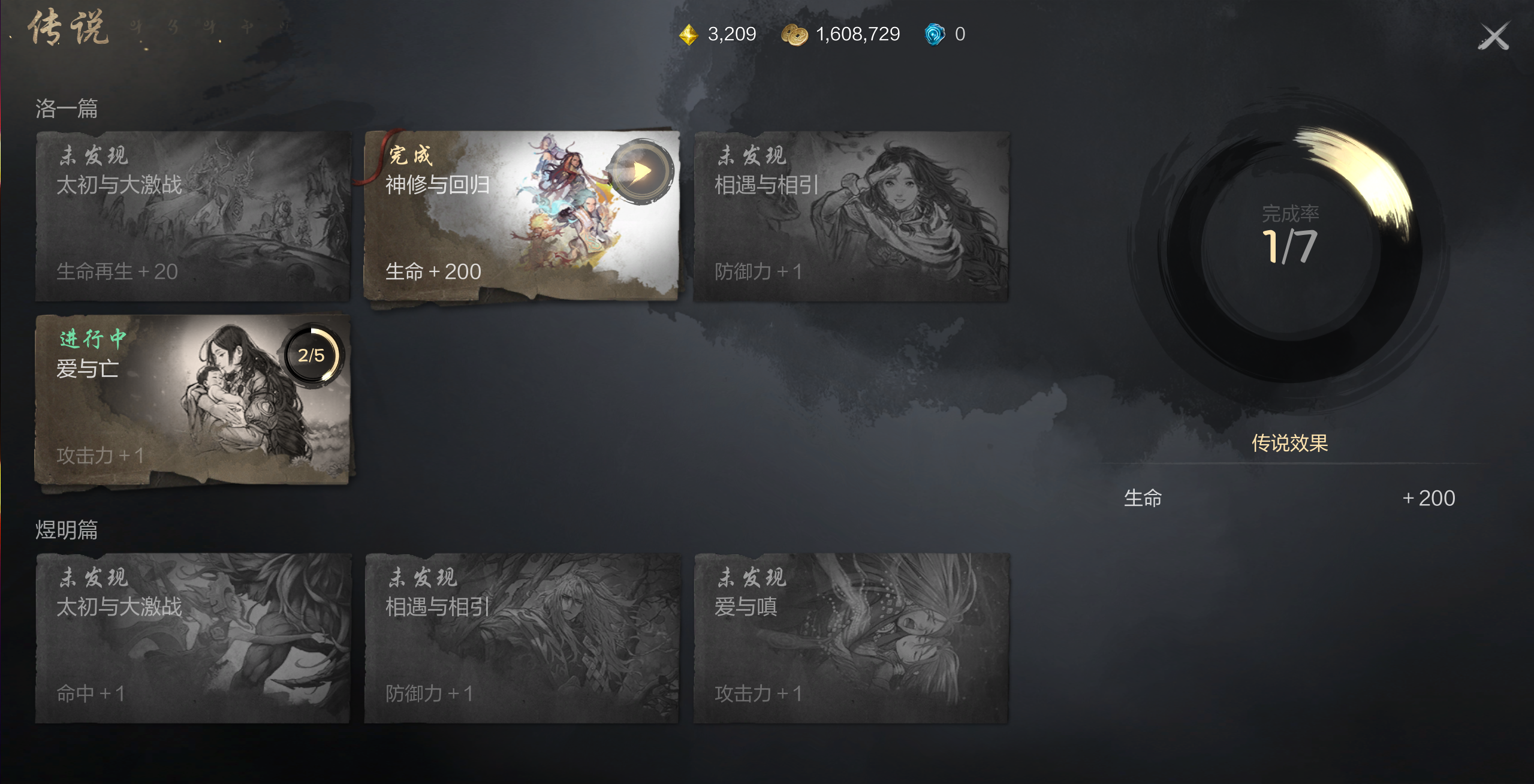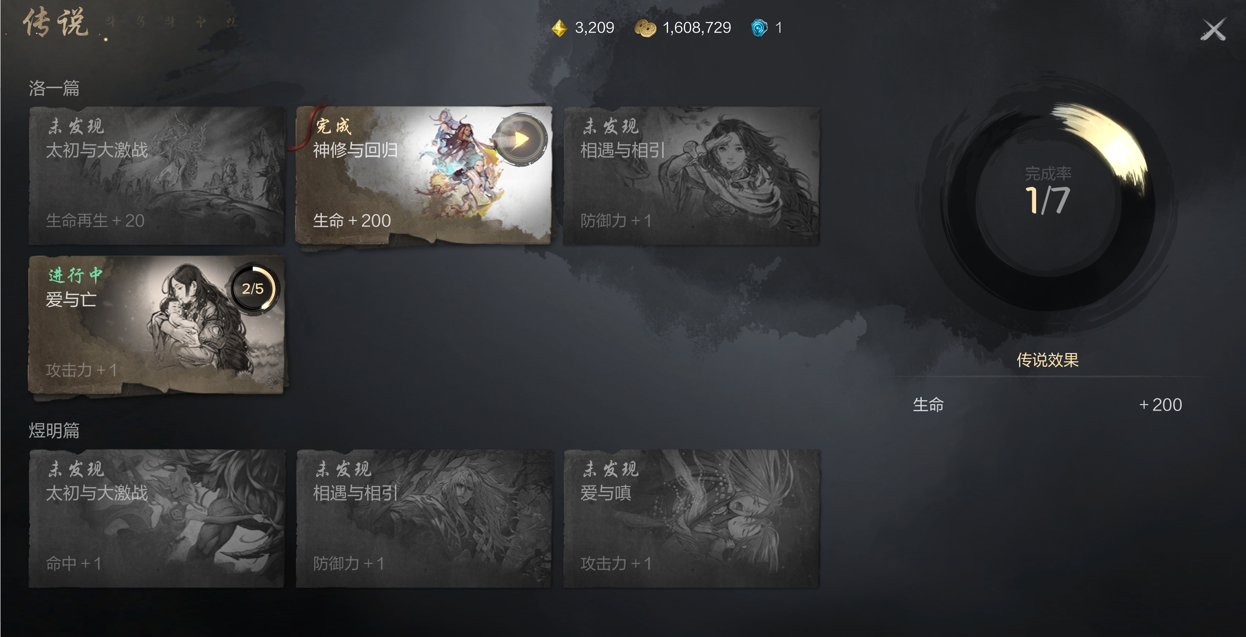 解锁一篇传说剧情的全部记忆片段,即可激活相应的属性加成。