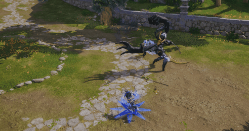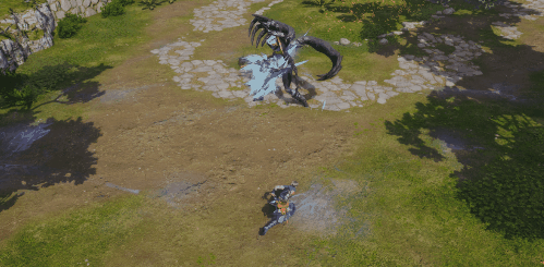 战斗过程中,她会有一个非常具有威胁的招式——怒吼。这招一旦使出,霞玲会在她面前大范围震地,裂纹的出现代表着危险的信号。这个时候,站在裂缝上你会看到血量不断下滑,受伤是难免的。因此,看到她站起来怒吼的瞬间,你要赶紧掉头撤离当前区域,尤其是在她的正前方那片120度区域内,千万别停留。她的怒吼不仅仅会震动地面,还会让你在裂纹范围内持续掉血,如果被困其中,治疗药水根本不够你消耗。