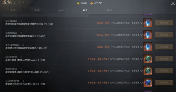 战斗成就则相对比较复杂,玩家就需要来到不同的区域,将这些怪物全部的击杀之后就可以获取。