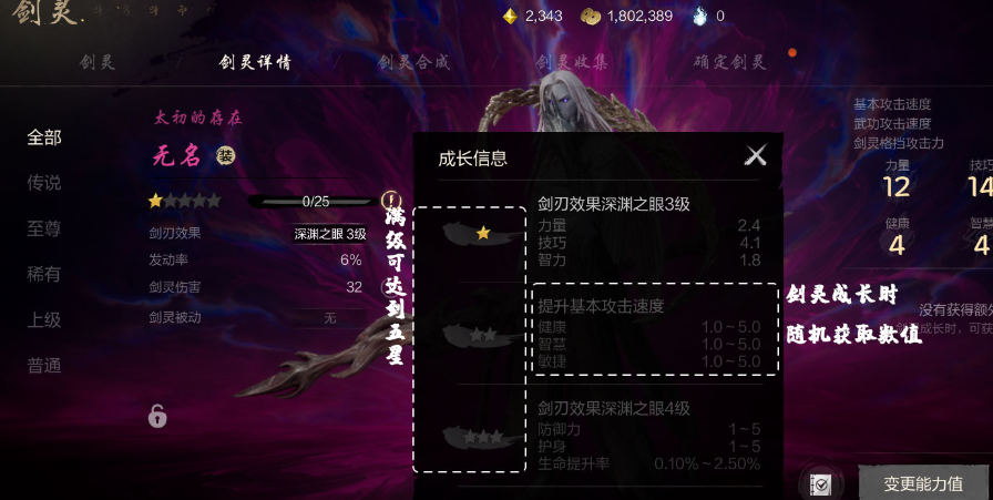 说到剑灵的作用,它其实可以属性加成,这种属性加成包括力量,敏捷,智力,健康等等六维属性,在攻击速度跟武功攻击速度方面会有不错的作用。在该游戏里面剑刃效果其实也属于剑灵中的一种作用,它能够释放独特的坚韧效果,能够提升玩家的战斗力。