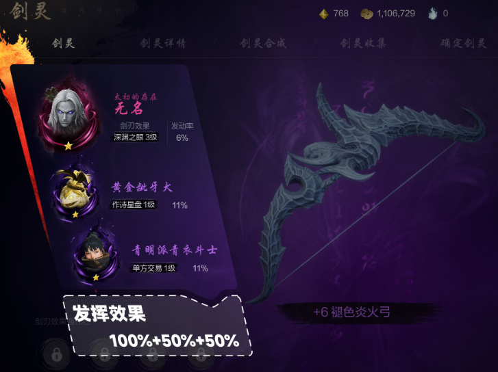 其实一把武器可以装备三个剑灵,主剑灵的属性加成和剑刃效果就可以直接百分百生效,而两个副剑灵的属性加成跟剑刃效果只能够一半生效,所以说合理的搭配剑灵才能够让它提升战斗效果。