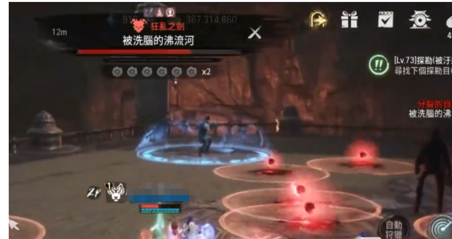一波集火攻击以后,沸流河的血量会快速的下降,等血量已经不1/4时,boss就会进入到狂暴的状态,在该状态下的boss会对正常进行火焰攻击,场上会出现一团团火球,同时沸流河还会开始随意的对敌人进行冲刺,躲避该技能最好的方法就是玩家们跑到对角处带有蓝色光罩的npc这里,在蓝色光罩中待一段时间以后,我们的身上就会出现一枚蓝色的珠子,这个珠子就是抵抗火焰伤害的工具,攻击时若是发信珠子消失,需要在返回光罩内补珠子。
