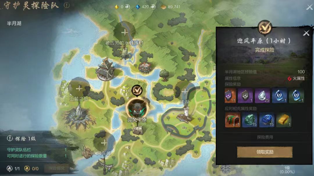 属性克制和守护灵探险队有着很密切的联系,因为守护灵探险队的核心玩法,就是派遣不同的守护灵去地区探险,然后获得奖励。要想派遣守护灵,战力必须达到或者是超过探险区域要求,每次探险都需要消耗一块探险石。
