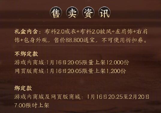 不绑定款:2025年1月16日20:05限量12.000份(网页版商城限量上架1200份)
