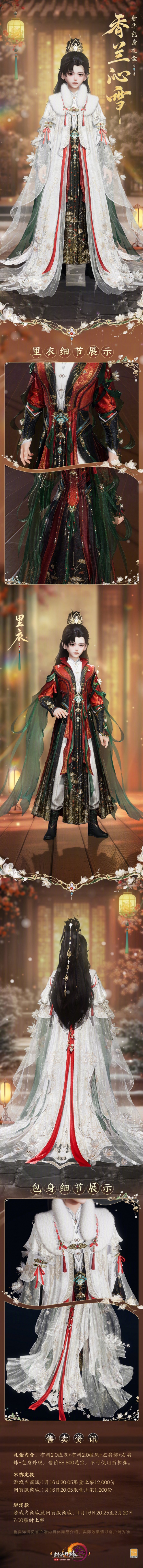 1、本次包身礼盒【香兰沁雪】售价价88.800通宝,不可使用折扣券;