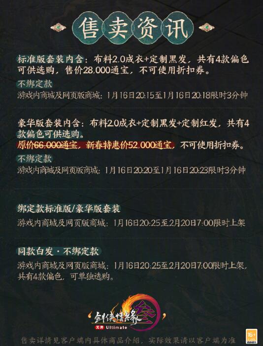 3、标准版售价28000通宝,豪华版特惠价格52000通宝,都不可使用折扣券。