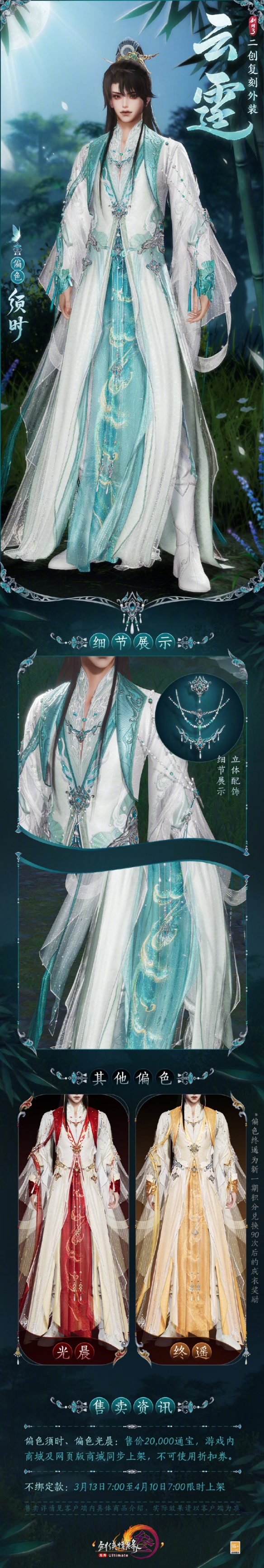 1、本次复刻的外装【云霆】为限时售卖时装,会同步登录游戏和网页商城;