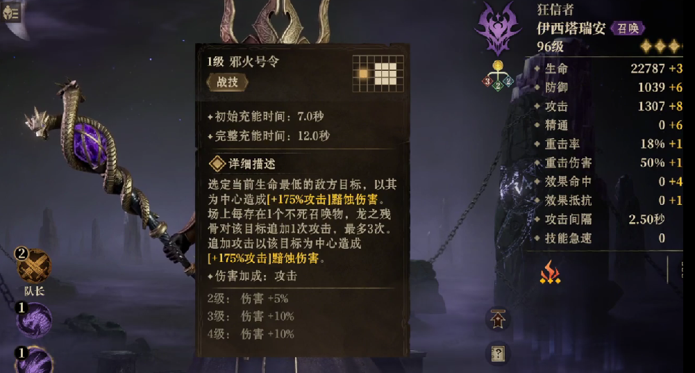 伊西塔瑞安这个角色除了能够召唤龙之骸骨以外,他也能够强化自己团队的召唤物,然后再去提高他们的攻击力跟生存能力,这样的话能够让整个团队变得更加的持久,在输出能力方面也会变得更高。