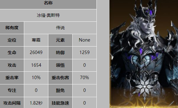 但是这张卡比较特殊,前期的获取难度较高,所以可以先用葛尔芬来代替,这是一个重要的单体输出冰爆紫卡英雄,葛尔芬的点杀能力非常强大,能够轻松击杀对方一些防御能力较弱的输出角色,她的技能可以搭配冰体系里面的冰晶道具使用,多次释放战技,提升暴击与重击伤害。