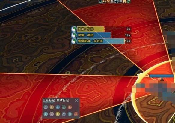 boss将随机点名1个远程玩家对其的方向造成双扇形AOE