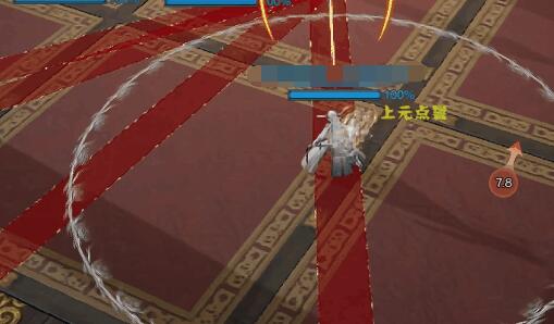 释放该技能时随机点名一个玩家,然后boss面向该玩家造成扇形AOE伤害,碰到并造成减速,扶摇躲。