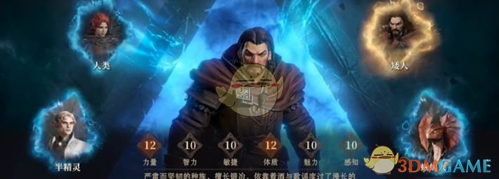 初始属性:力量12、智力10、敏捷10、体质12、魅力10、感知10