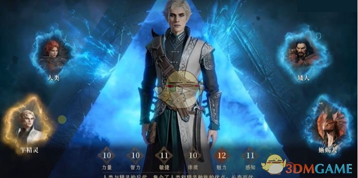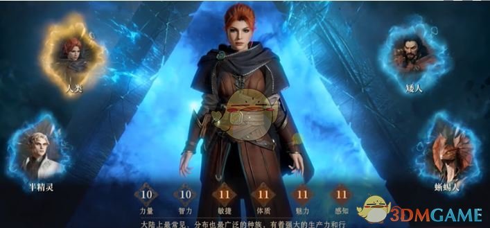 初始属性:力量10、智力10、敏捷11、体质11、魅力11、感知11