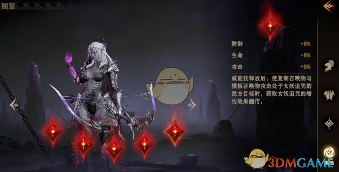 2、战技命运的捉弄发射三支诅咒箭矢,不仅能造成黯蚀伤害,还会给目标挂上女妖诅咒效果,使召唤物对其伤害提升30%。