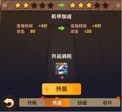 允许玩家通过特定的途径来提升机甲品质,进而增强机甲战斗能力。升品方式需要获得同样的机甲才能升品。