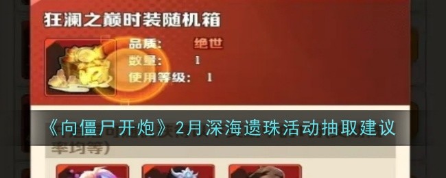 以上就是小编整理带来的《向僵尸开炮》2月深海遗珠活动抽取建议,更多相关游戏攻略,请关注手游网!