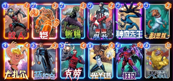 3、灭霸在5池卡中入手的优先级较高(个人建议在洛基、至高等不需要太多4、5池组件卡的核心之后),搭配任何卡都可以用,但灭霸终极版组件要求较高,如果卡池较浅但又追求完美的玩家就不建议在早期入手了,卡牌强度推荐指数:9分。