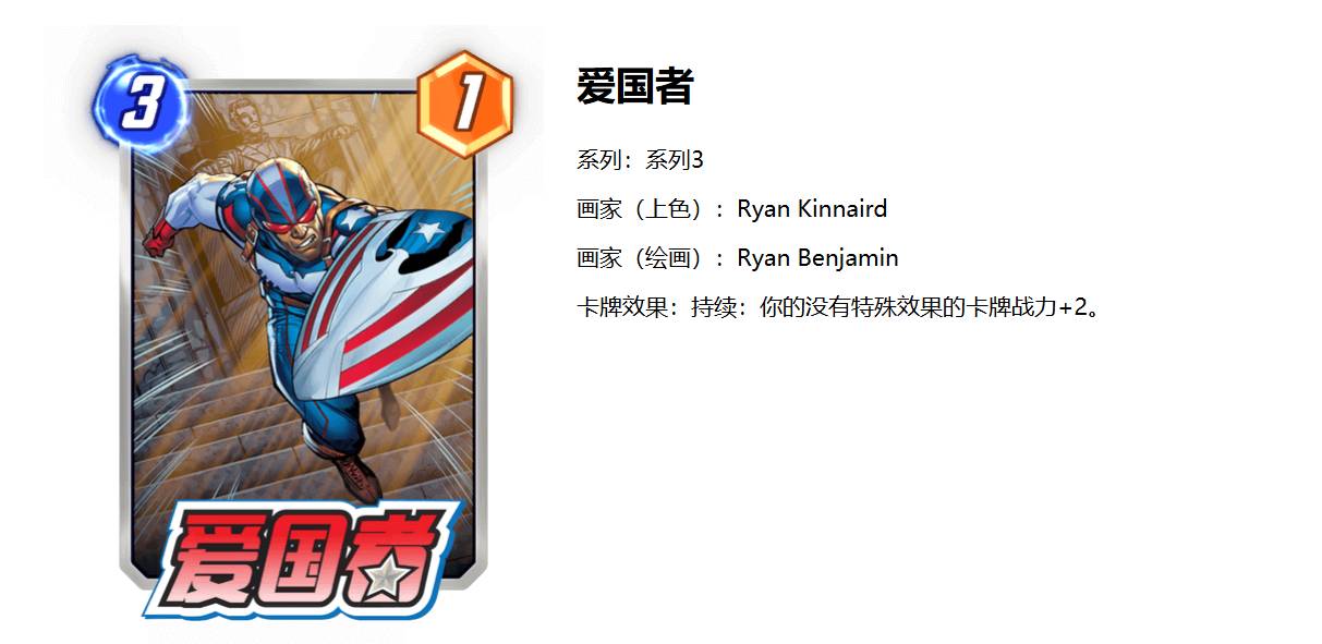 在漫威终极逆转中,奥创爱国者卡组爱国者buff没有特殊效果卡牌为核心组建的一套卡组,以下是卡组推荐: