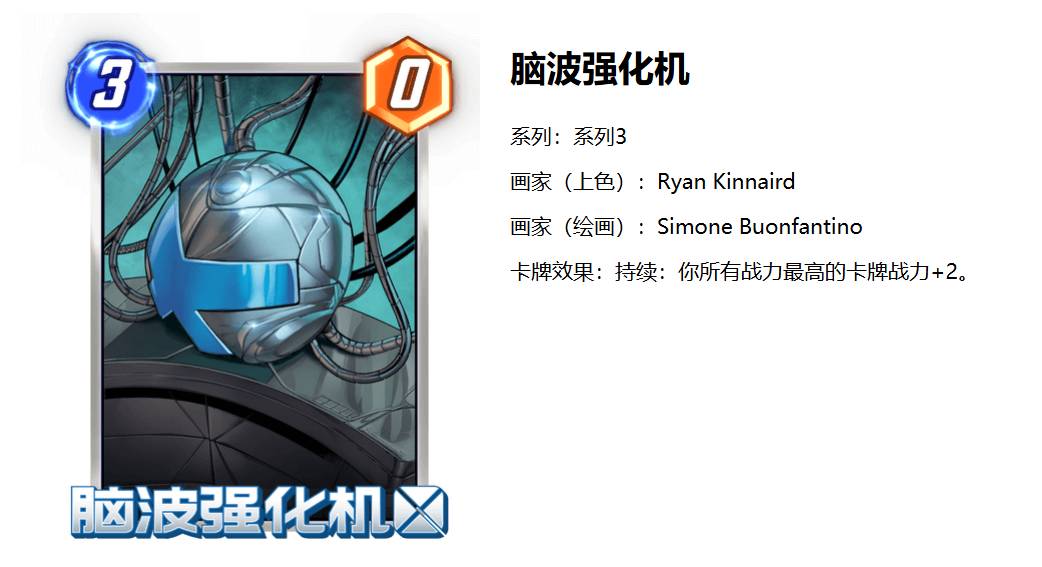 脑波强化机卡组以其独特的策略和强大的buff能力,在《漫威终极逆转》中提供了一种有趣且具有挑战性的玩法。脑波的卡组千变万化,从脑2-脑10都有相应的卡组可供选择,最经典的脑3还是比赛常客,强度十分之高。通过合理构建卡组和精心规划战术,我们可以利用脑波的特性在战场上取得优势,最终赢得胜利。以下是卡组推荐: