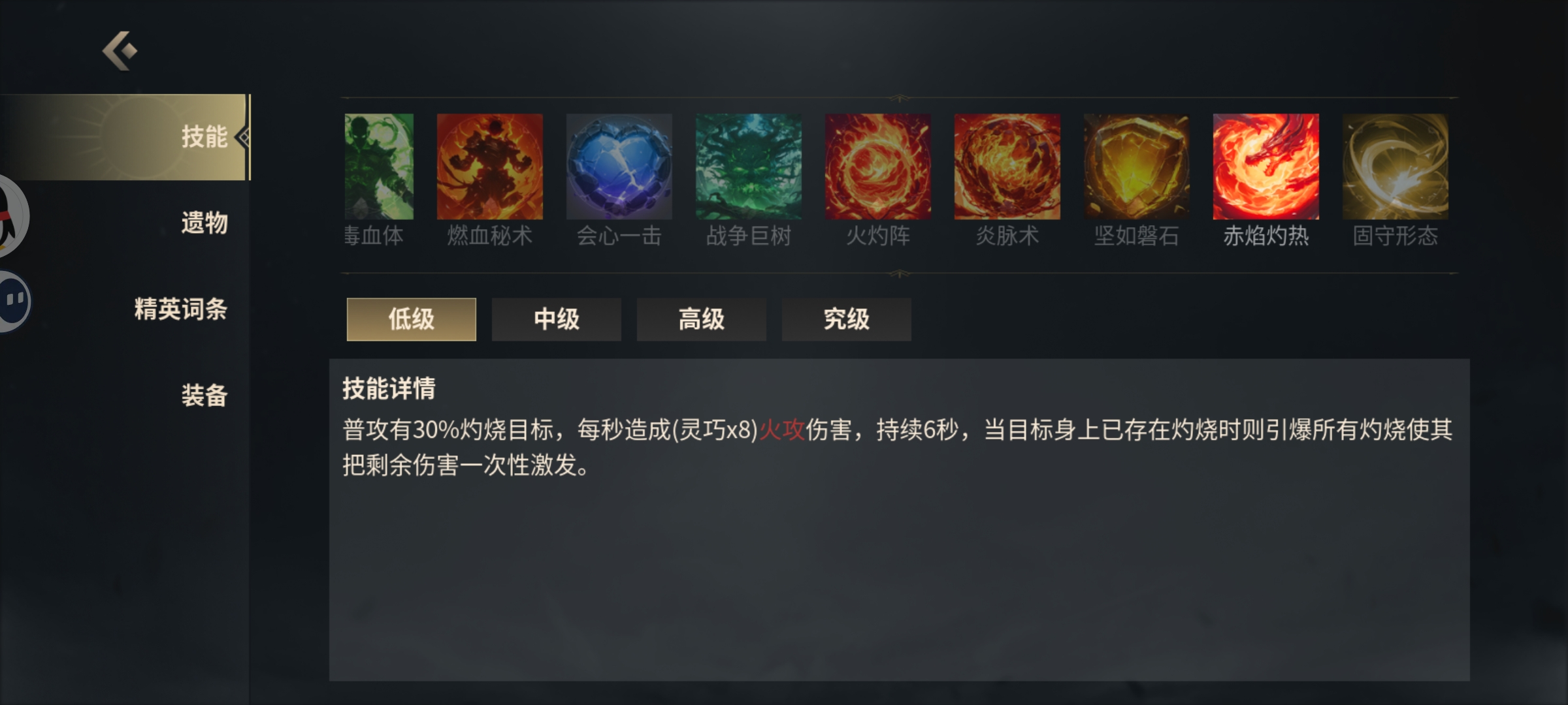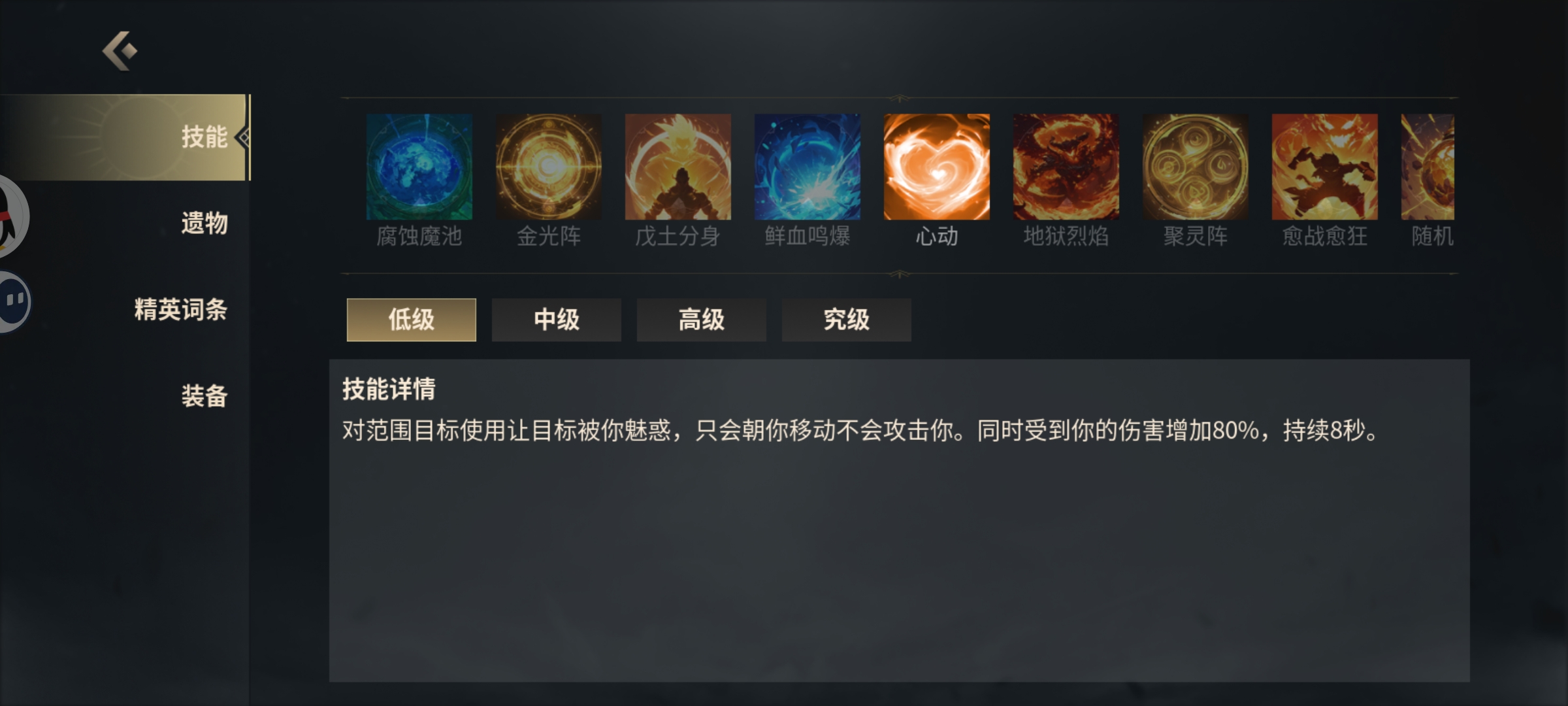 四技能更改为:金光 心动 神圣/会心一击 灼热 会心为优选 前期有什么用什么