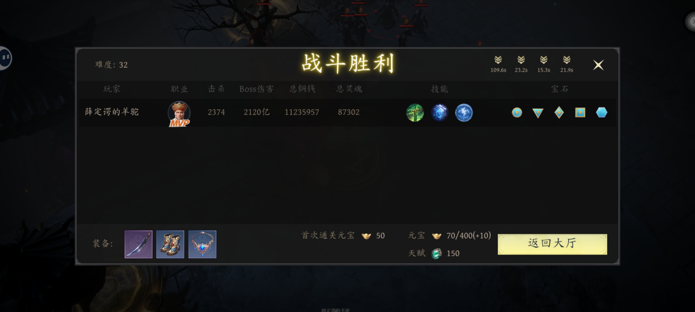 思路是唐僧可以把其他任意技能伤害都附加上神识的伤害倍率,青竹剑阵不知道是不是bug,倍率居然有1500倍体魄伤害,唐僧的被动也能把他伤害附加上神识的加成,1500倍的神识伤害,秒天秒地秒空气,目前我是单人打到难度30,第四个BOSS出来直接秒