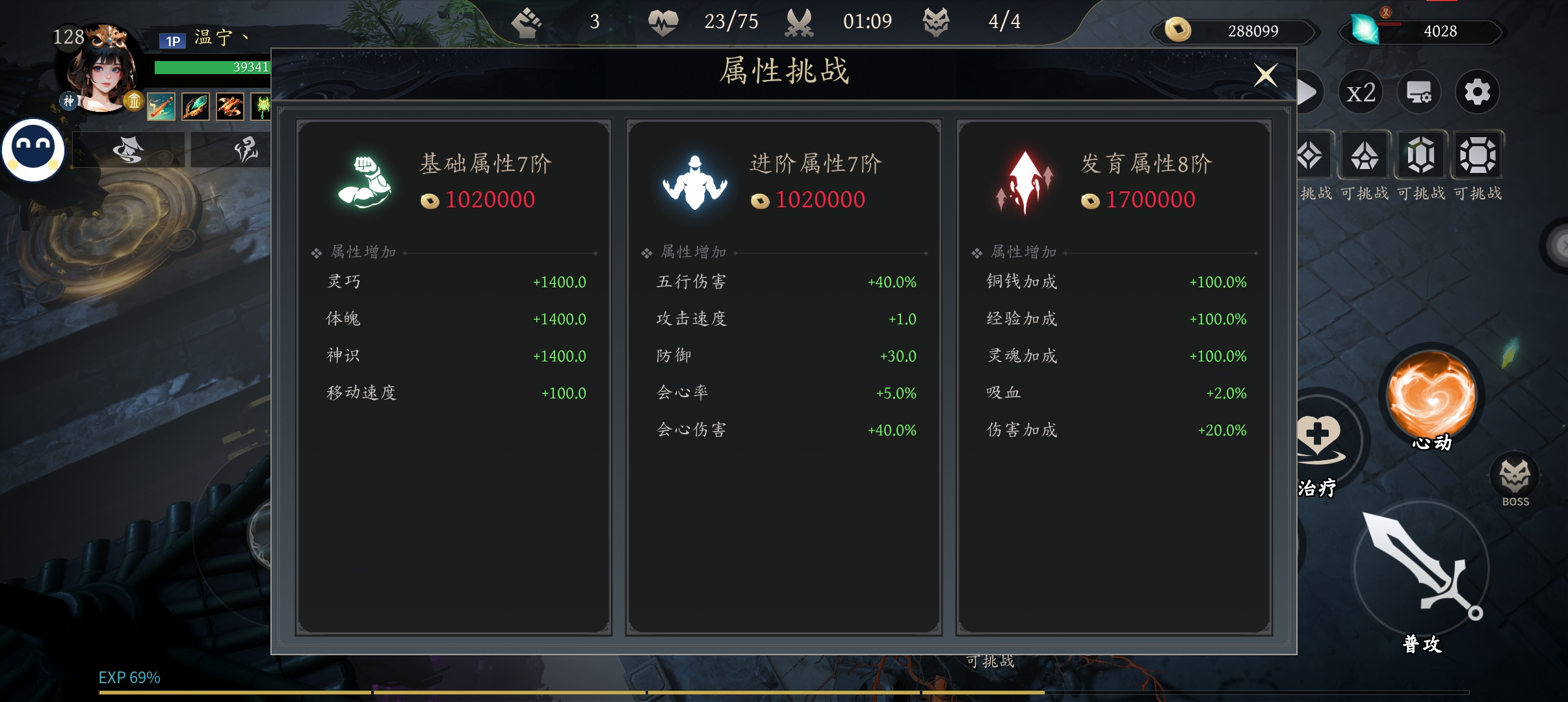 然后找最后的毕业技能了也就是技能商店最贵的那俩小子(我个人基本不会用中级技能都是初级直接找高级毕业) 技能推荐就在上边,一样刷属性刷资源,开始为通关做准备了,比较顺的兄弟这个时候可以开始最后的准备,就是技能升级