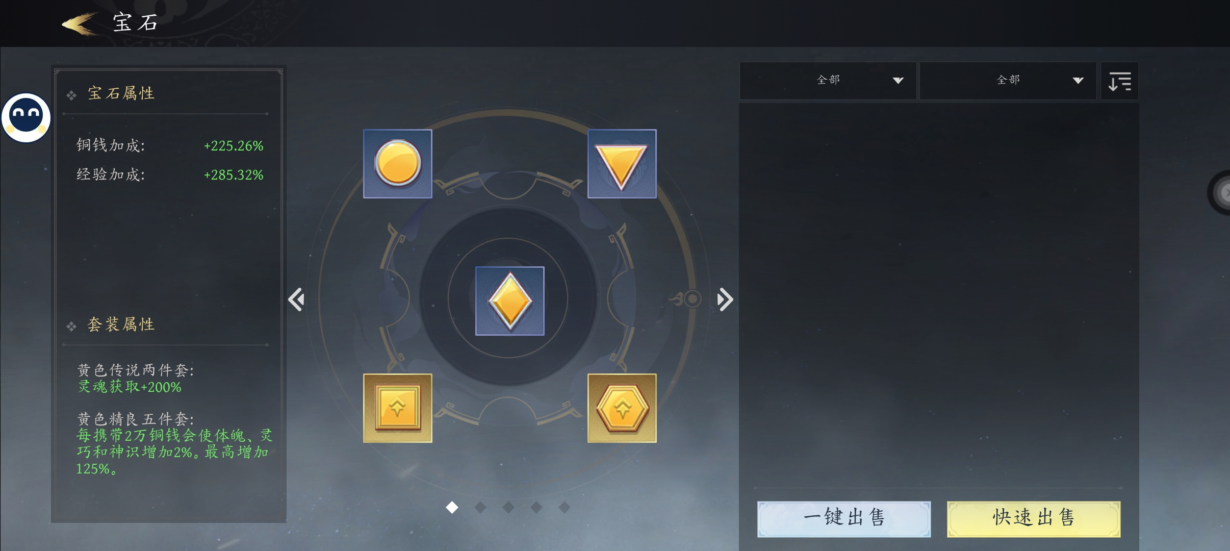 宝石选择:5个黄宝石 黄宝石加快资源获取 并且5黄宝石有属性加成可以做为毕业宝石使用。