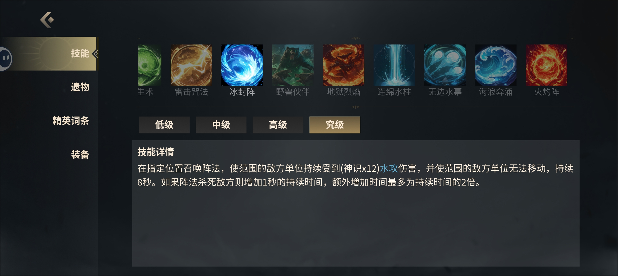 主动技能选择:心动 冰封阵(增加aoe做为神识职业的加成技能伤害不俗)或搭配其他增伤技能