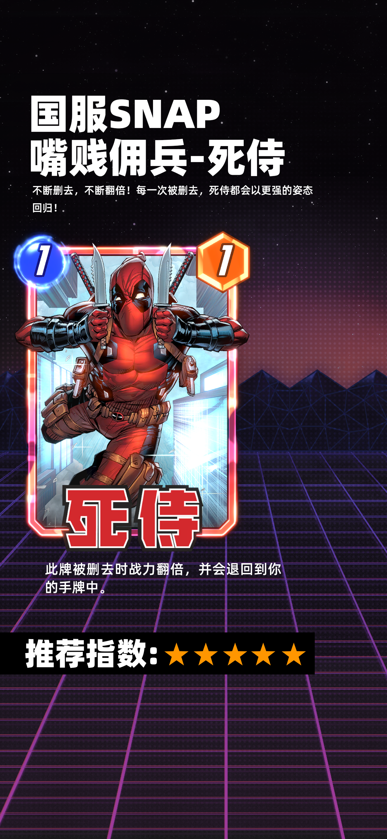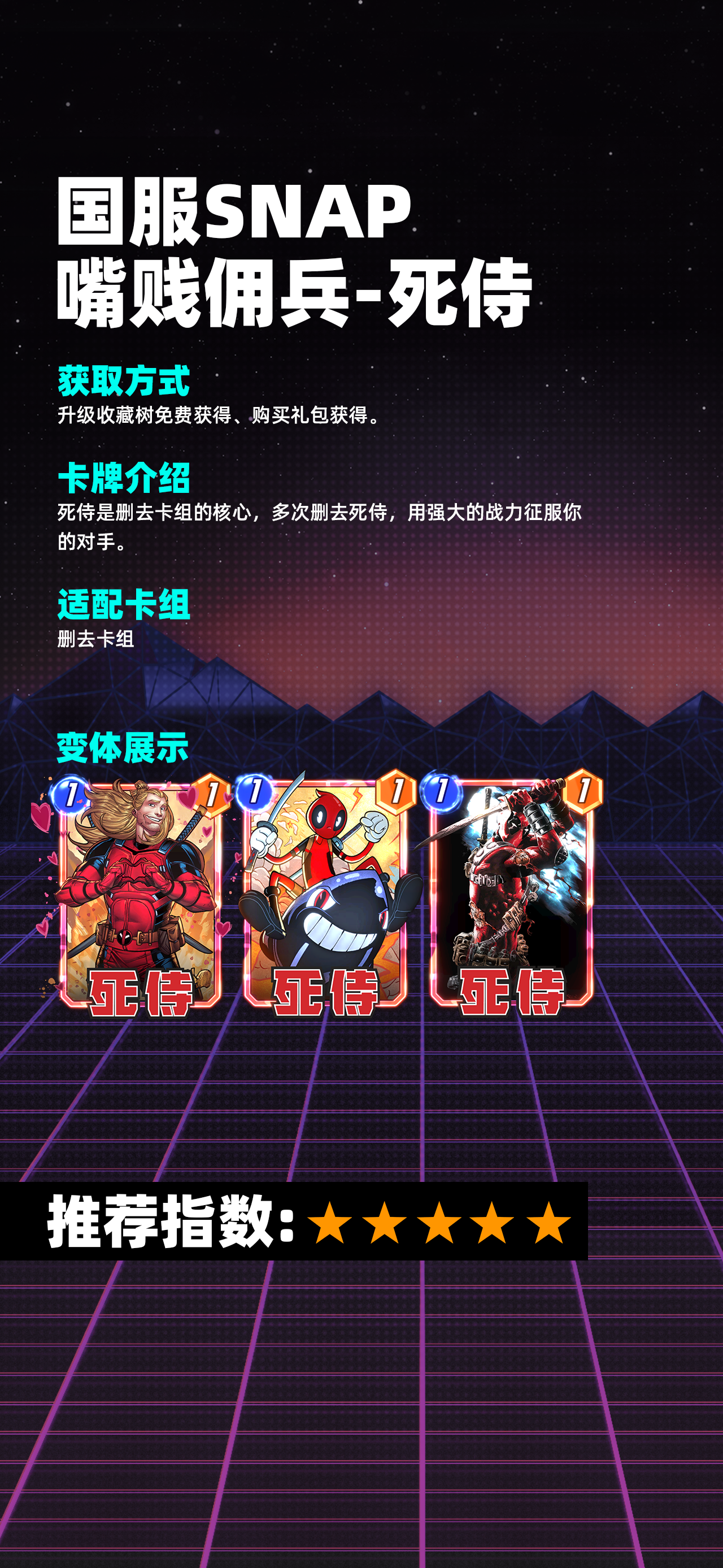 死侍是删去卡组的核心,多次删去死侍,用强大的战力征服你的对手。