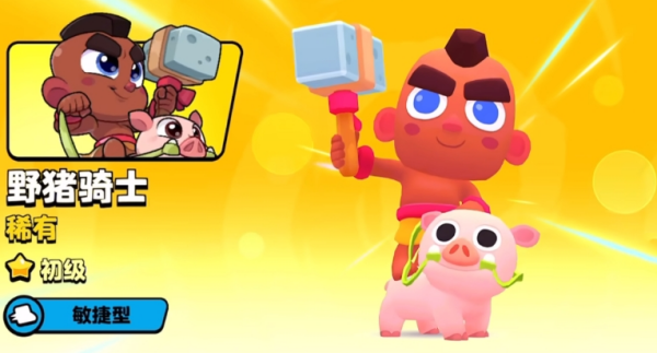 1、野猪骑士属于进攻型角色,有着很强的攻击性骑着一只猪拿着锤子。