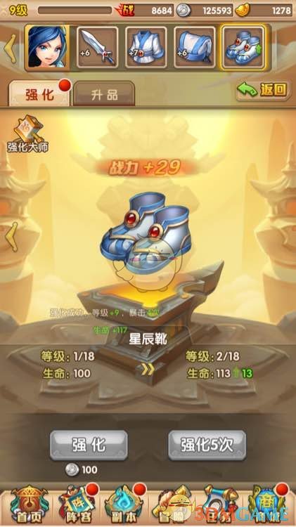 强化装备这方面,一定要跟上等级。一级两级无所谓,五级以上必须强,就三套别说钱不够,元宝买也要跟上!