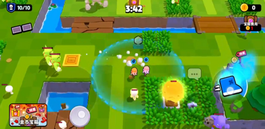地图中有很多可以帮助你快速积累资源的地点,最常见的就是蓝色宝箱,这个宝箱通常在出生地附近,而且是有限的,所以开局后一定要争分夺秒抢占。除了金币和宝石外,蓝色宝箱还能掉落非常有用的加速鞋,这个道具对于前期发展至关重要。此外,还有萝卜地和大树等资源点,它们能持续为你提供金币和宝石。而地图上那些闪闪发光的金币和荒漠上的土包,往往被许多玩家忽视,但它们也是获取资源的好地方,千万不要错过哦。