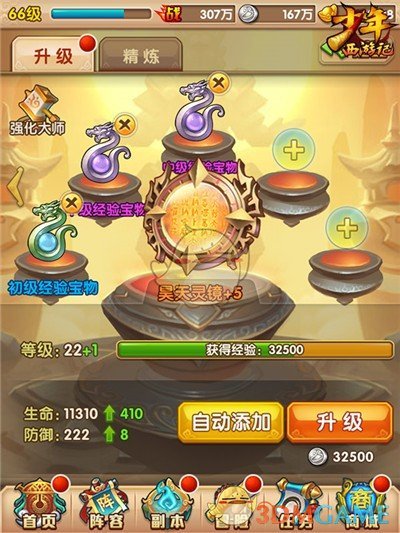宝物可以吞噬经验宝物或者其他宝物来升级,升级可以提升基础的攻击、防御、生命属性。