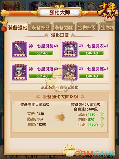 强化大师是《少年西游记》中的特色系统,全身的装备和宝物,在强化到一定顶级时,就可以激活强化大师的属性加成,同时强化大师也给强化装备提供了一个快捷的入口,有了它,强化装备更加方便。