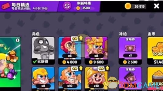 2、游戏商店:使用金币或宝石可在游戏商店中购买心仪的角色,大家需积极完成任务和战斗来积攒金币。