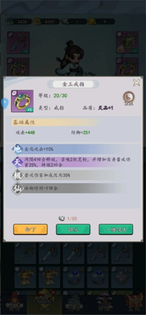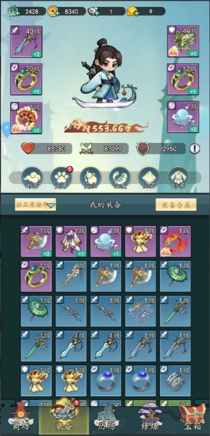 1、首先就是装备了,我们的装备主要就是要强化我们的武器以及衣服了,其他的都不用管,因为武器和衣服加的攻击力高,三件同位置同品质的装备可以合成品质更高的装备建议多抽装备
