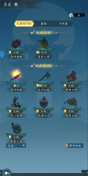 4、灵宝,可以把能解锁的全都解锁了,主要升星加攻击力的就行