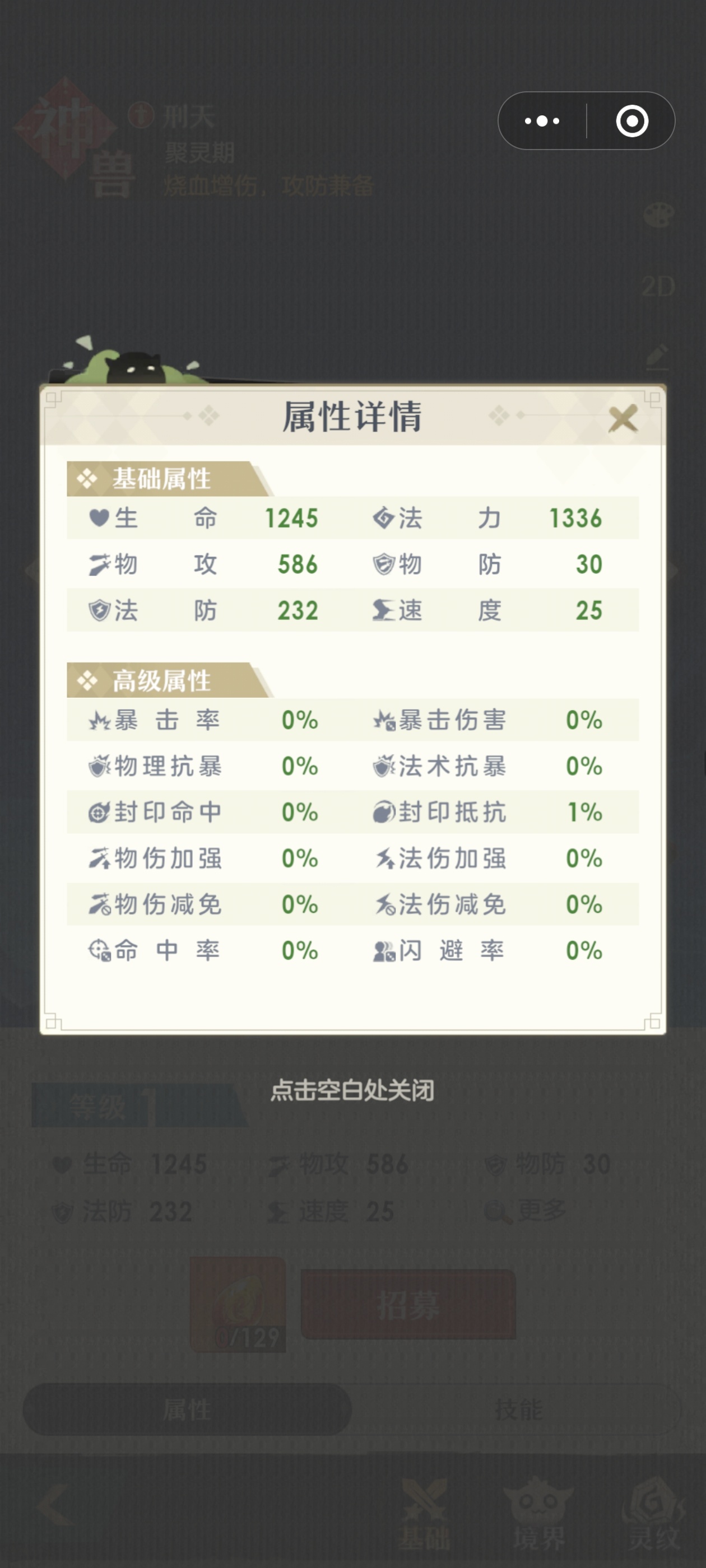 刑天的基础属性属中等,生命、物防、速度偏低,物攻较强。不过由于刑天血量减少可提高物理防御,在一定程度上补足了物防较低的缺陷,加上技能【断颅枭首】让它血量越低,为敌人附加重伤debuff概率越高,生命较低反而成了优势。同时,刑天还自带吸血技能,整体而言,它的站场能力并不算弱。