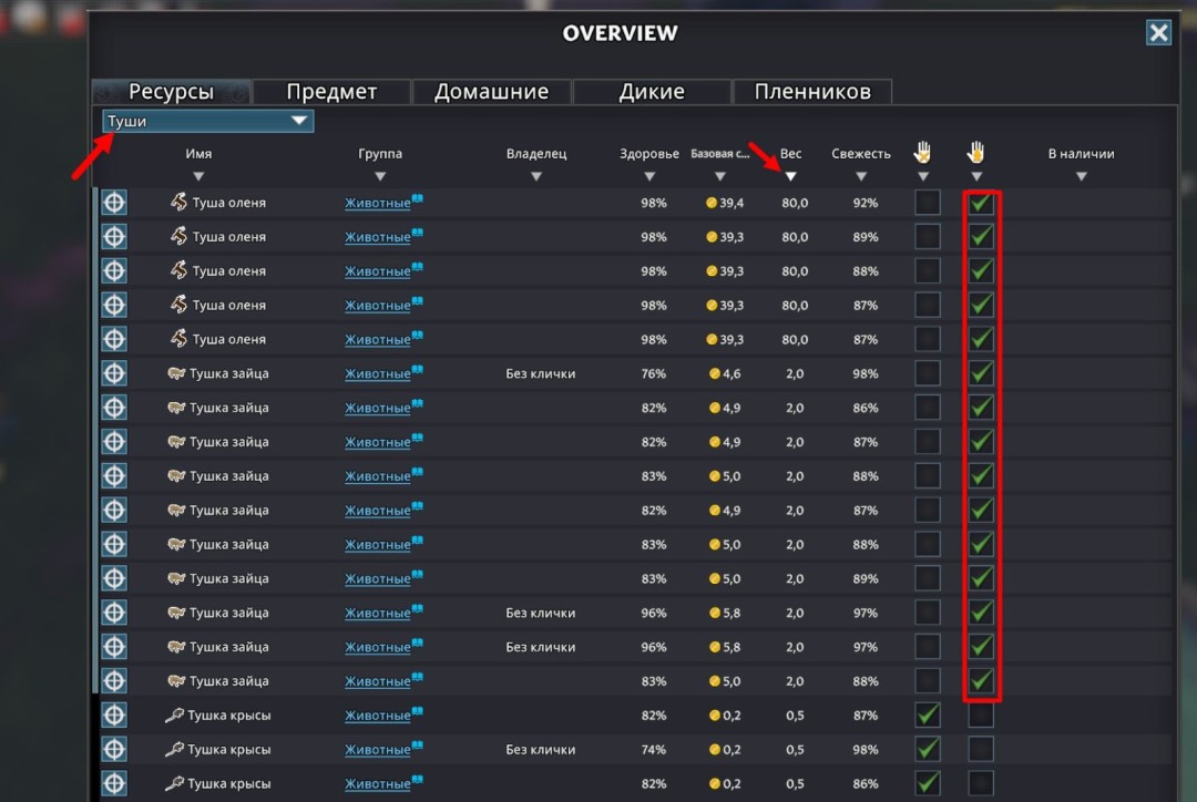 如果划定的仓库区域内已有动物尸体,现在是时候收集宝贵的动物尸油资源了。为此,您上方有一个信息按钮,快捷键为 7。
