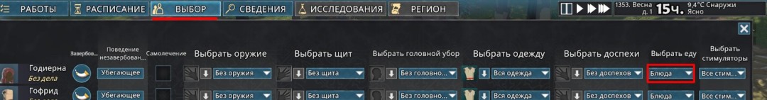 现在可以暂停游戏了,所有准备工作已完成。食物种类的可获得性取决于季节。如果正值春季,请在植物学家为床铺收割干草后,划定采摘浆果、蘑菇和药用植物的区域。