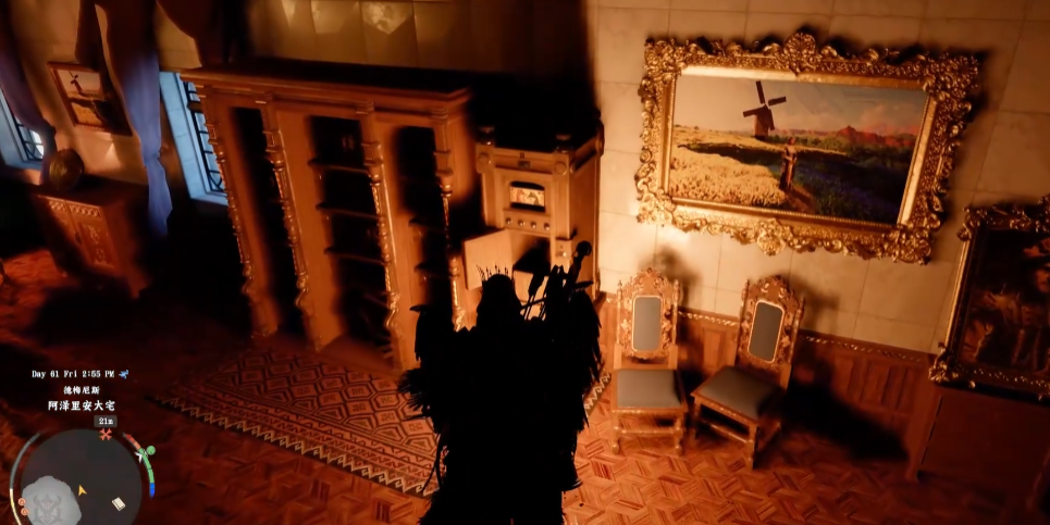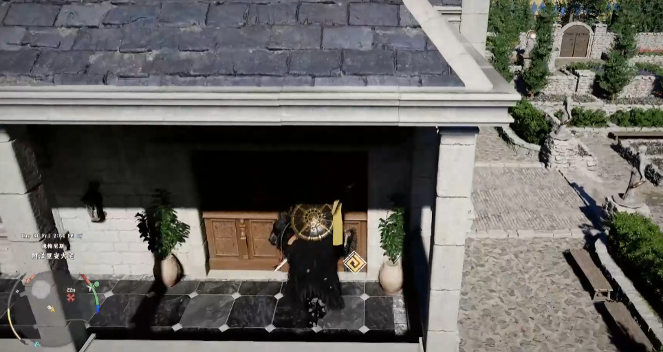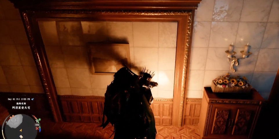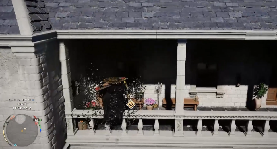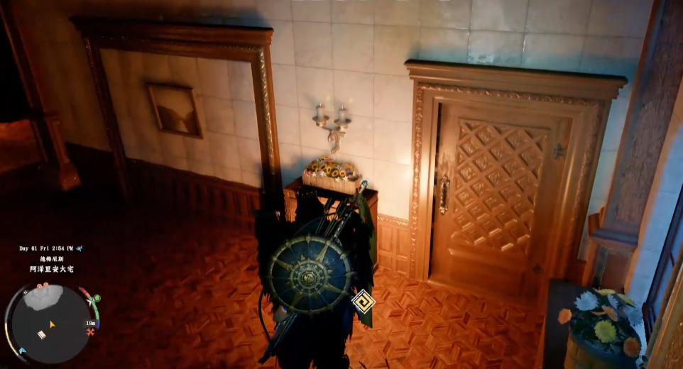 你可以爬到旁边的房子上,然后从那边飞到二楼,进入之后找到壁画暗门。