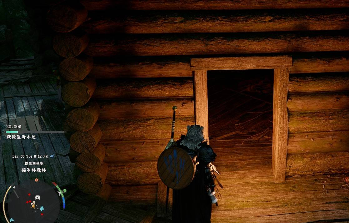 第三种方法是侧门破锁。玩家需要先拿到开锁工具或盗贼钥匙,可通过雄狮大宅或通缉任务获取。绕到主木屋后侧木门,互动开锁即可进入,注意正门永远锁死,不可强行突破。