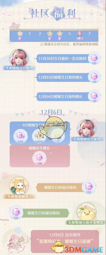 大家期待已久的无限暖暖将会在12月5日正式公测,届时大家只需要完成登录并参与活动即可获取大量的道具资源奖励,其中就包括抽卡次数,至少能拿到126抽,那么具体怎么获得呢?下面小编整理了《无限暖暖》公测126抽获取方法介绍,感兴趣的小伙伴一起看看吧。