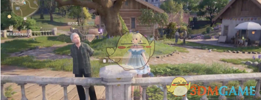 2、抵达后在下方靠右侧找到一颗大树和一个秋千吊篮。