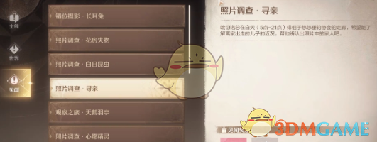 2、靠近后与其对话可得知失散多年的儿子相关信息,希望玩家在照片中指认出他的儿子。