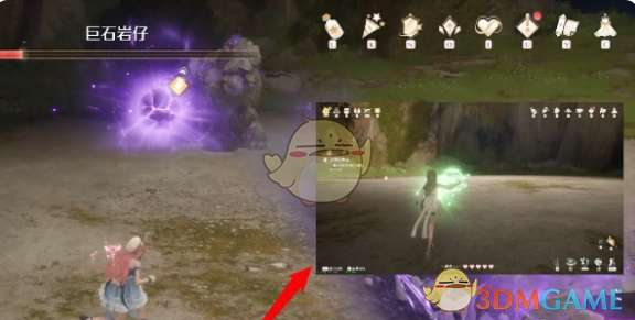 4、翻滚形态:本关需躲避翻滚的石头人,并绕到石壁后方进行输出。