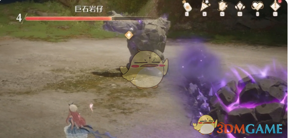 2、抛掷形态:这关的主要通关思路在于躲避碎石以及生成的石柱,同时也可以在敌人释放技能时攻击肚子上的空洞。